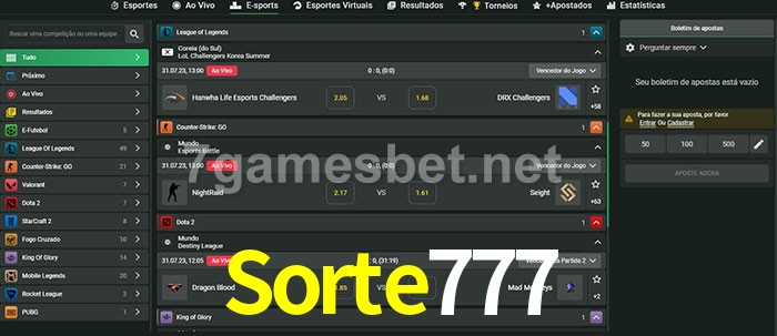 O Sorte777 oferece uma grande seleção de opções de apostas em e-sports com probabilidades competitivas